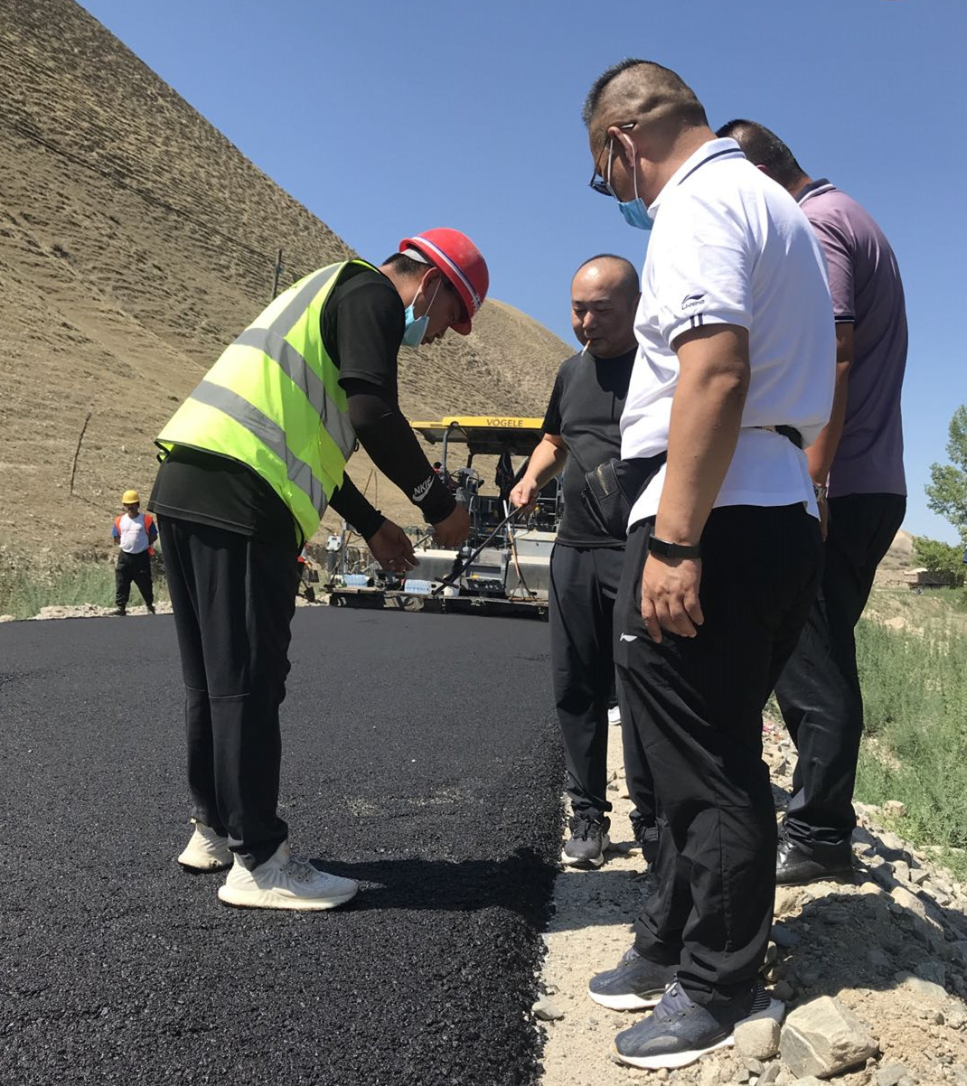 大家首先來到施工現(xiàn)場,工人們正頭頂烈日、腳踩高溫緊張的作業(yè),站在離攤鋪的位置幾米遠都能感覺到陣陣熱浪撲來,就是在這樣的工作環(huán)境下,我們的工人依然堅守著。檢查組一行認真觀察路面的壓實度、厚度及平整度等,對工程安全質量措施的落實執(zhí)行情況進行邊查邊看邊問,并對檢查過程中存在的問題與不足進行現(xiàn)場指導。