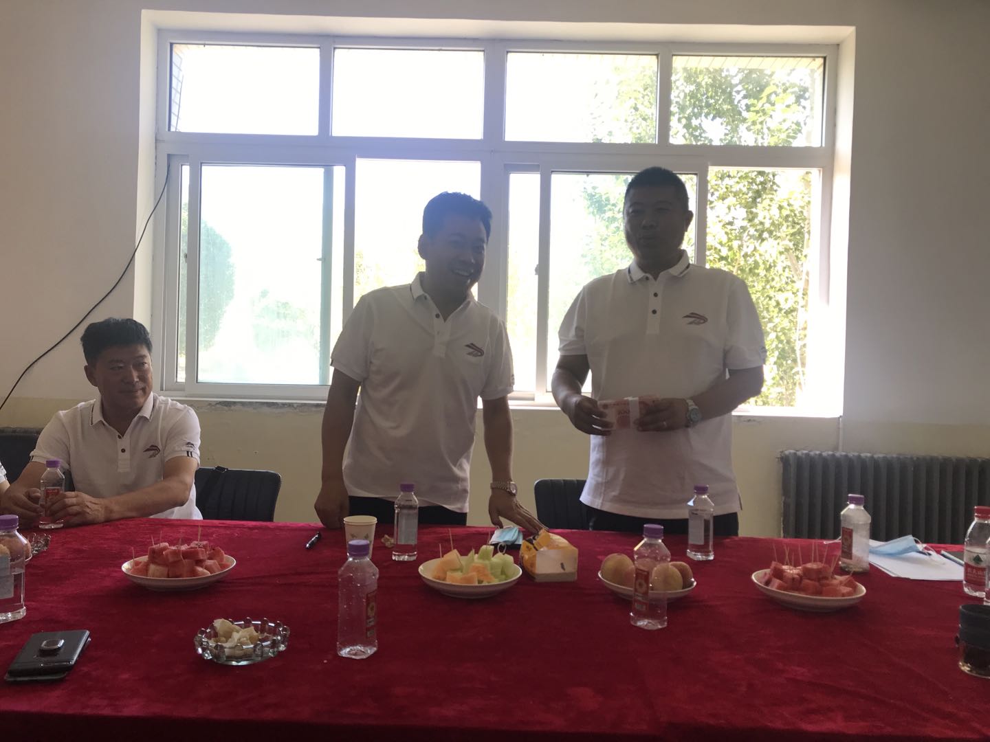 最后,董事長對項目部所付出的努力和取得的成績給予了充分的肯定,并對下一步的工作提出了希望和要求:要繼續(xù)發(fā)揚艱苦奮斗的精神,強化管理、持續(xù)提升管理水平,攻堅克難,切實保障施工安全,并現(xiàn)場發(fā)放了安全獎金。