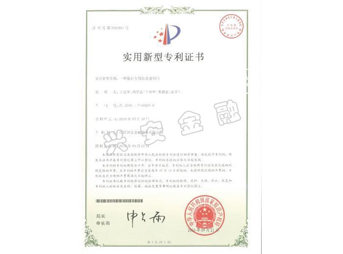 可視指紋開鎖聯(lián)動門專利證書